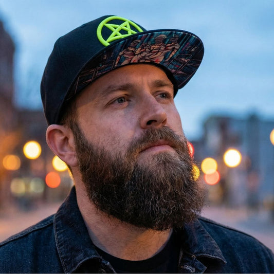 1. Neon Trucker Cap: The most common variant with a 6-panel crown, featuring a pentagram embroidered front panel that stands up straight.