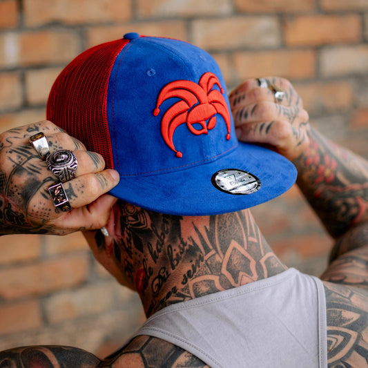 Wild Ride Trucker Snapback - Blue Suede/Red Mesh