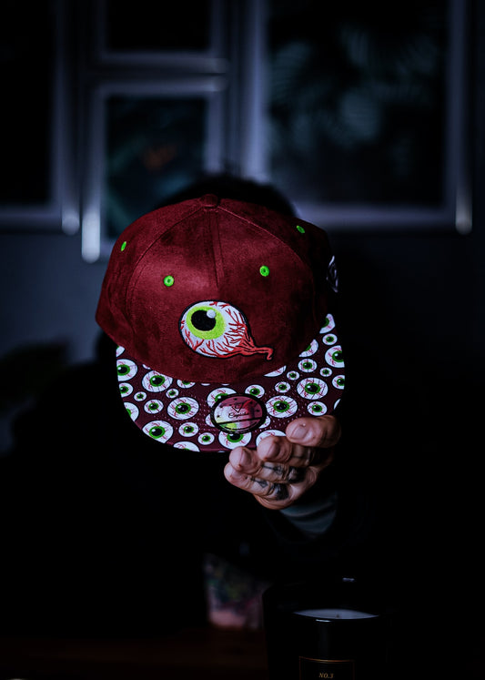 LIMITED EDITION Monster Vision Snapback - Burgundy Suede with Eyes
