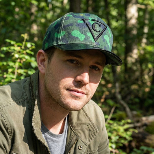 Cappellino Snapback mimetico verde - Visiera in pelle scamosciata