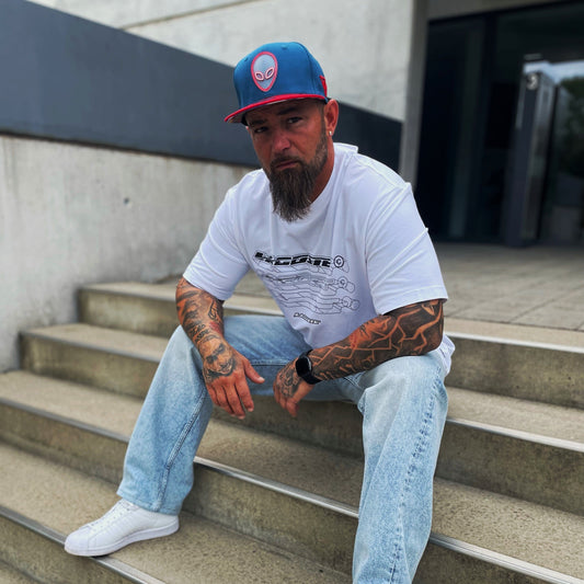 Cappellino Snapback Alien Party - Blu/Rosso con logo in gomma trasparente