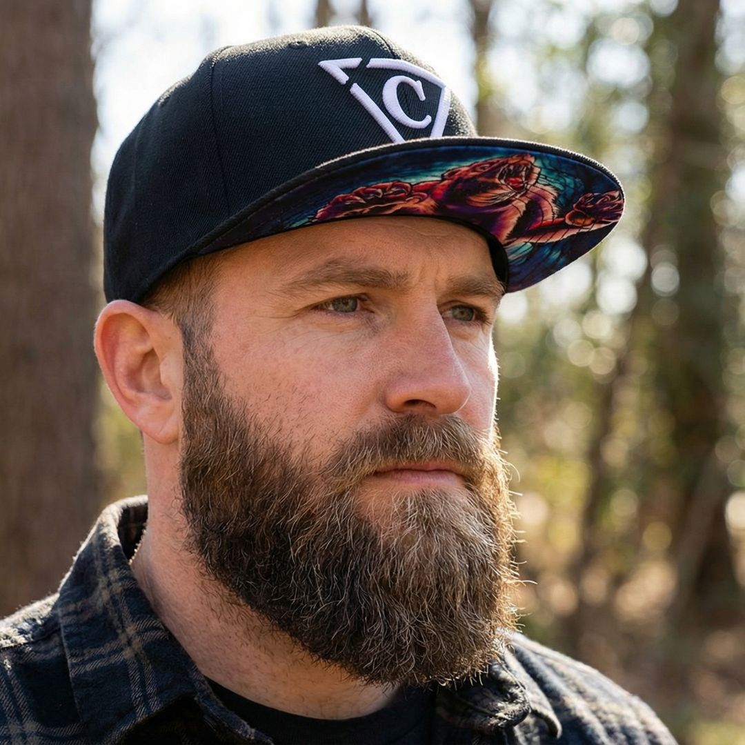 Grizzly è uno snapback nero con la visiera nera. Il logo frontale è un logo Capiche bianco. Il lato posteriore dello snapback è ricamato con "Capiche". I ricami sono in bianco. Il fondo dell'orlo è ricoperto dal design Grizzly. Lo snapback Grizzly fa parte della collezione Strong Animal.