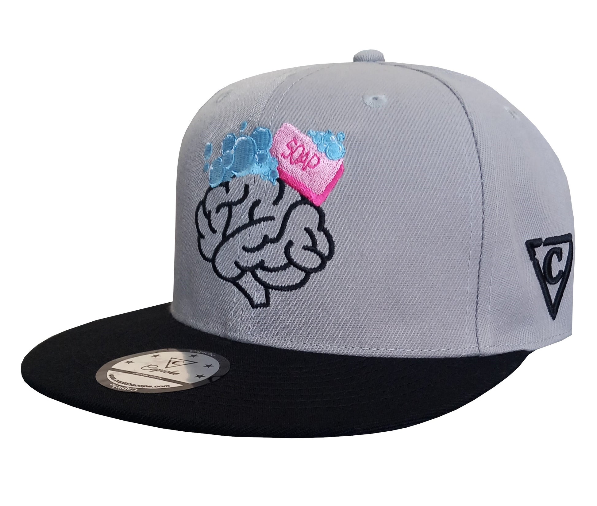 Brainwashed to jasnoszary snapback z czarnym rondem. Logo z przodu przedstawia mózg myty mydłem. Lewa strona snapbacka jest wyhaftowana tradycyjnym logo Capiche w kształcie litery „C”, a tylna strona jest wyhaftowanym napisem „Capiche”. Hafty są czarne. Dół daszka pokryty jest wzorem Brainwashed.