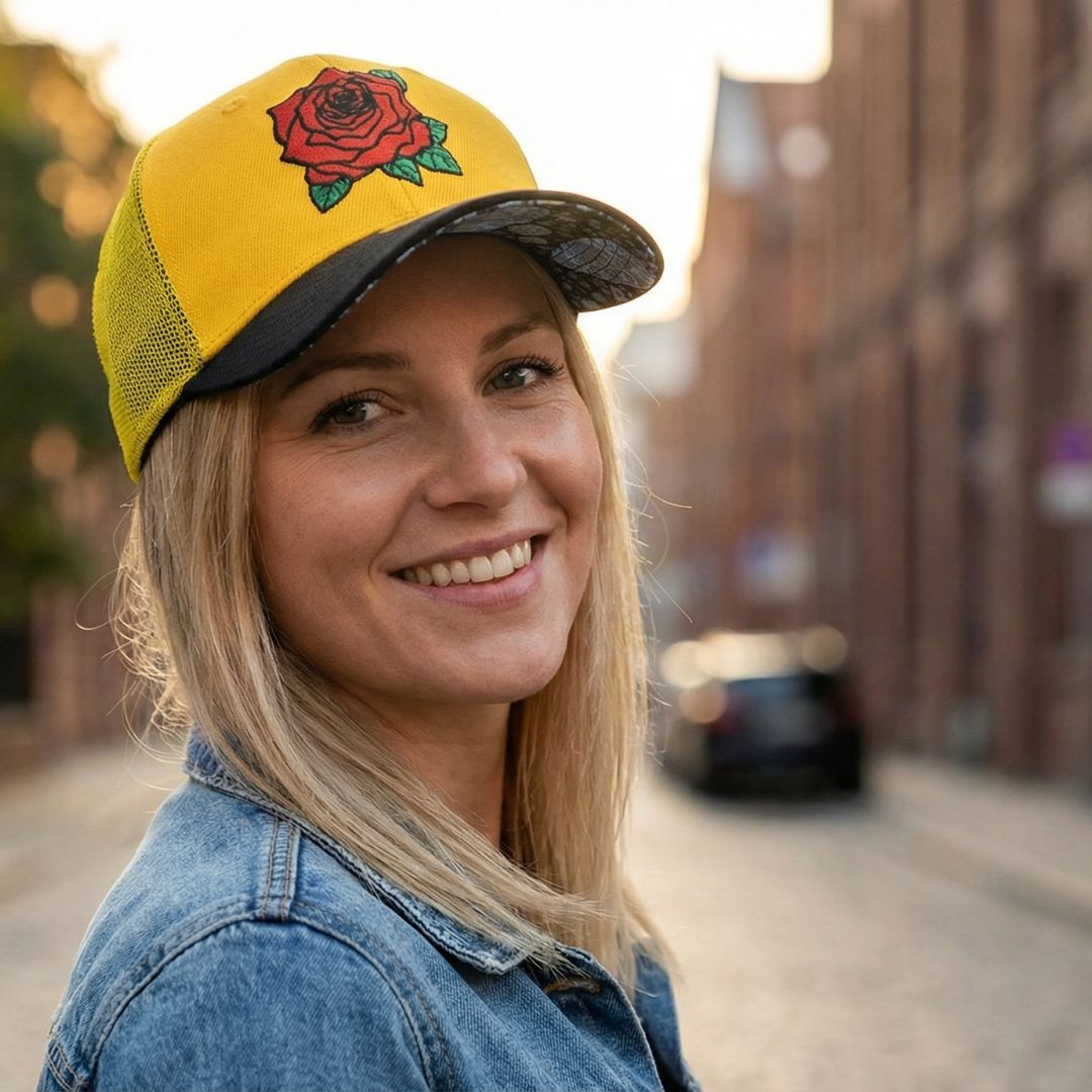 Motyw Day Of The Dead Yellow jest dostępny również w wersji czapki typu trucker! Ta żółta czapka typu trucker charakteryzuje się niezwykle wygodnym krojem. Jest to model w jednym rozmiarze z regulacją z tyłu, idealnie pasujący na głowy o obwodzie 55–61 cm (21,6–24 cali). Czapka typu trucker zostanie dostarczona w złotym pudełku z magnesem, idealnym do przechowywania, ale również jako pudełko na prezent.
