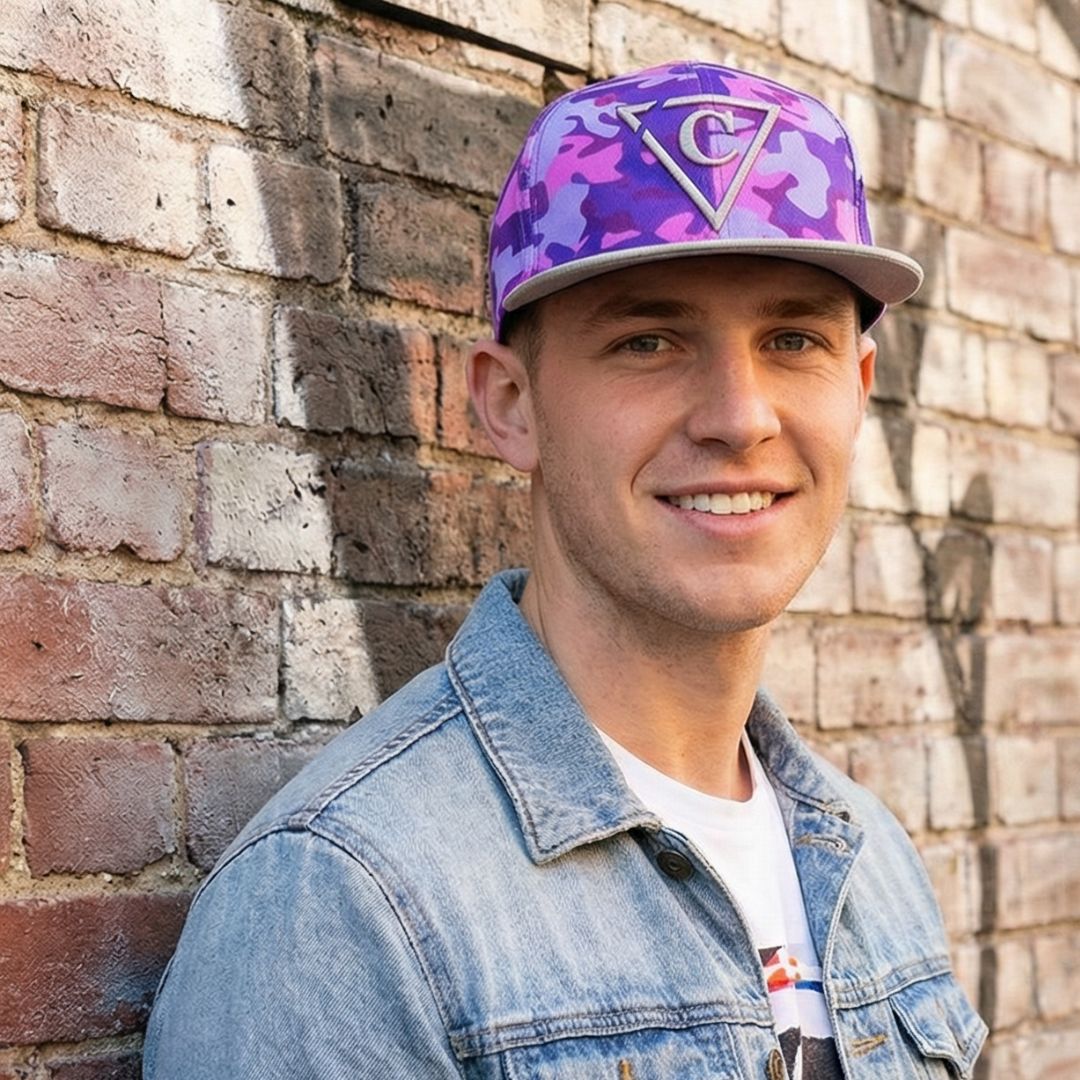 Purple Camo to fioletowa czapka typu snapback z szarym rondem. Logo z przodu to szare logo Capiche. Z tyłu snapbacka wyszyto napis „Capiche”. Wzór na snapbacku to kamuflaż.