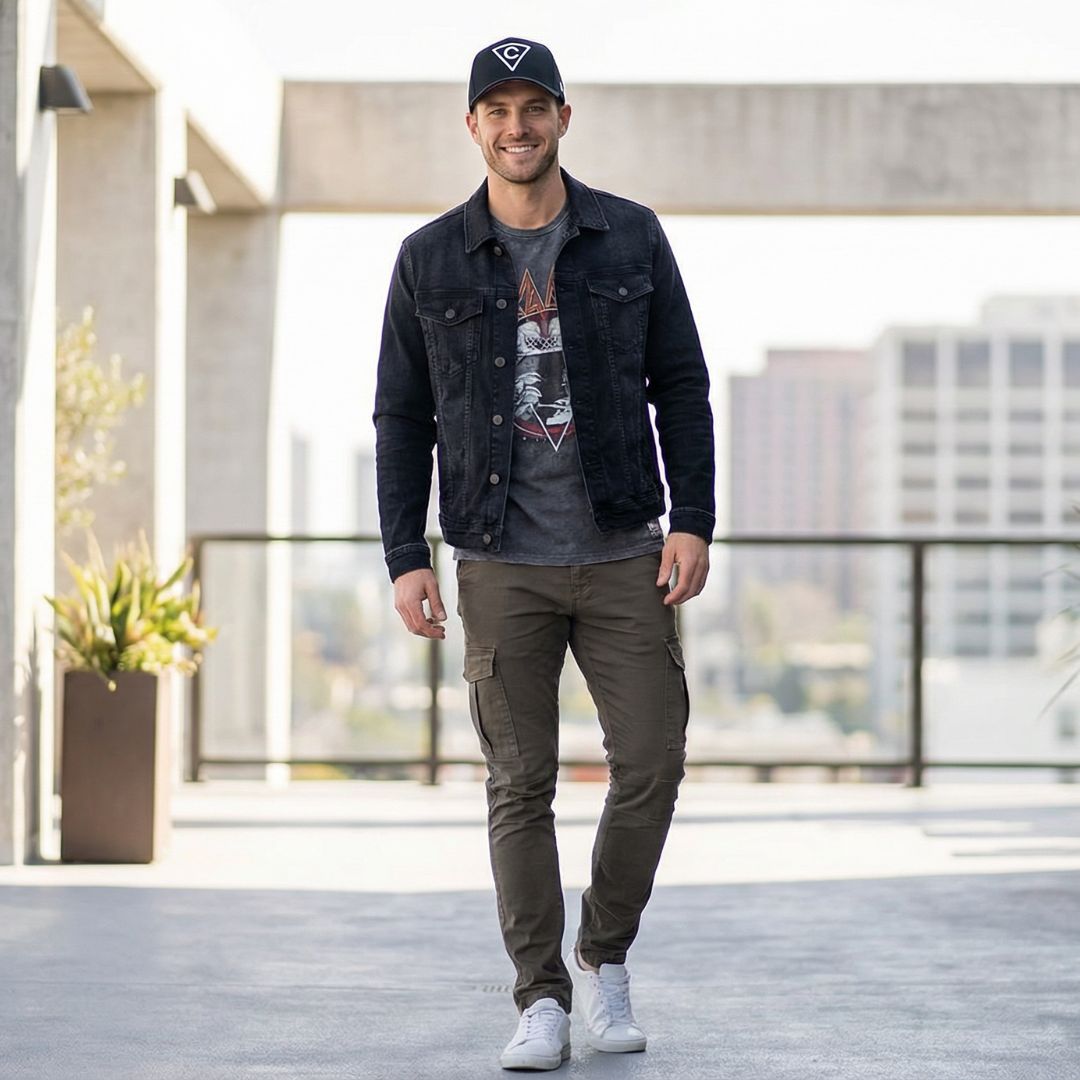 - Black curved baseball cap
