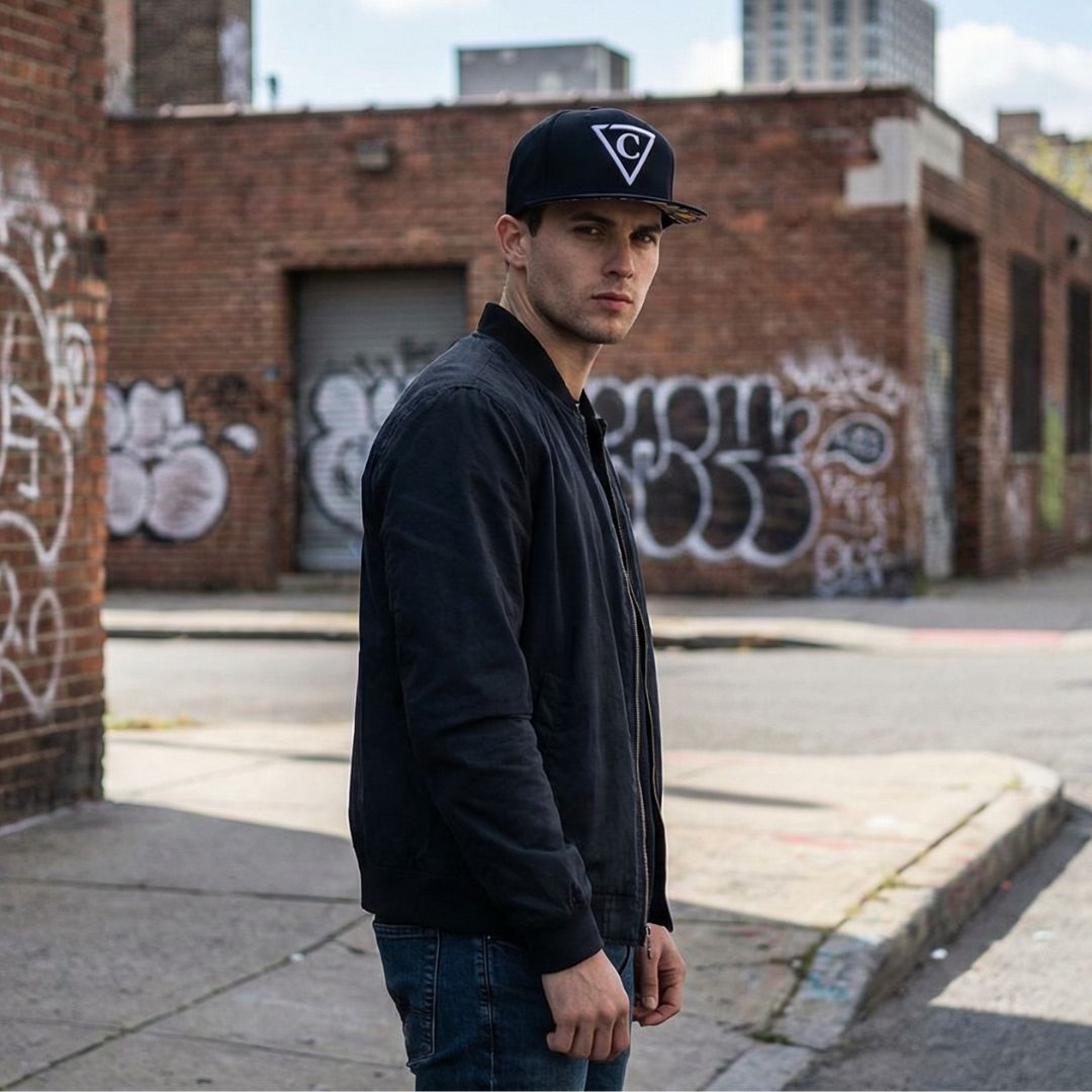 The Chief is a black snapback with a black brim. The front logo is a white Capiche logo. The back side of the snapback is embroidered with “Capiche”. On the bottom of the snapback is the chief design.