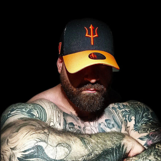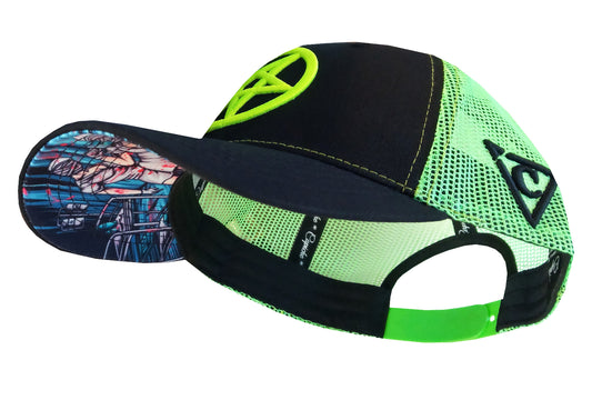 1. Neon Trucker Cap: The most common variant with a 6-panel crown, featuring a pentagram embroidered front panel that stands up straight.